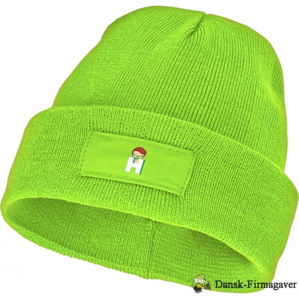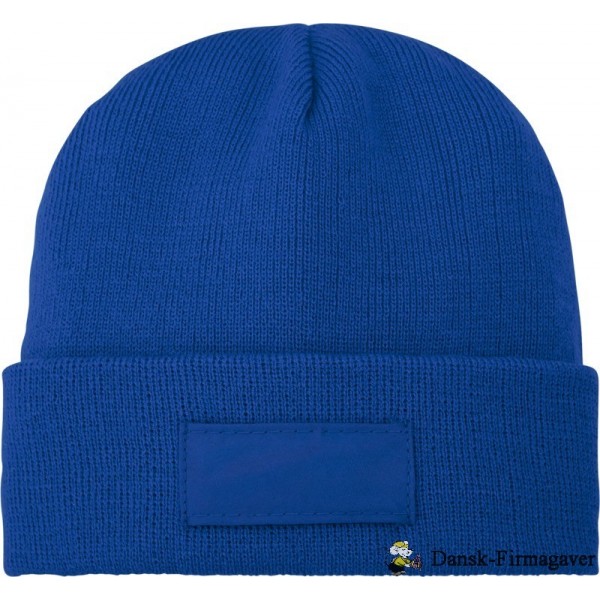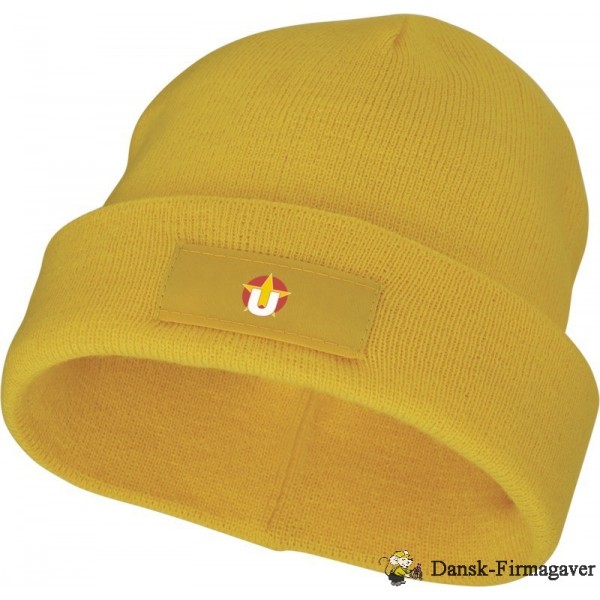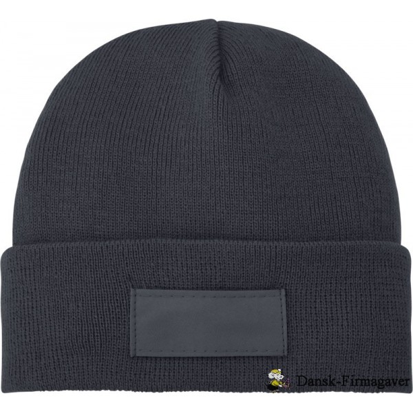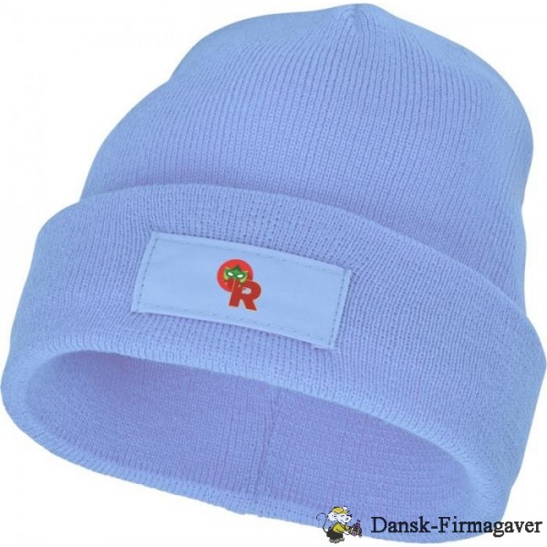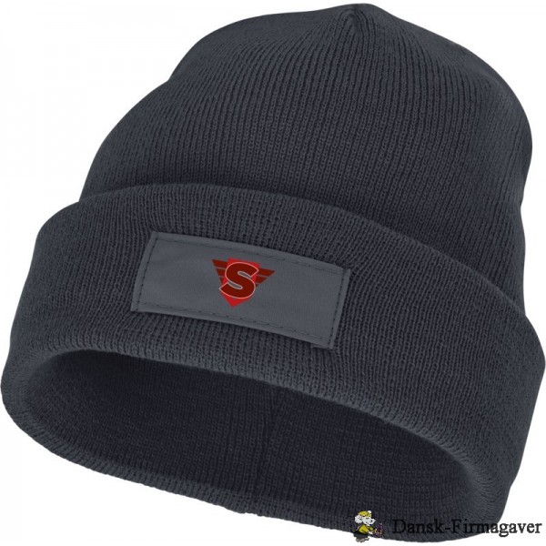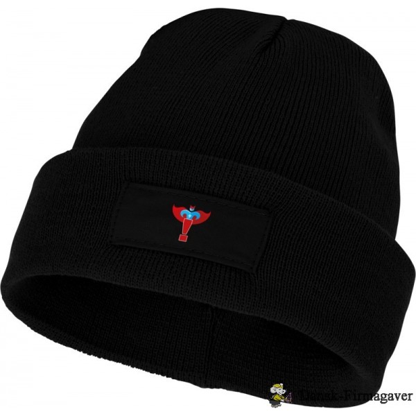 Boreas beanie med patch. Enkeltlags beanie med dobbelt foldet kant.Patch til branding. Enkeltlagsmuske med dobbelt foldet kant. 1x1 Ribstrik af 100% akryl. Lap af 100% polyester.