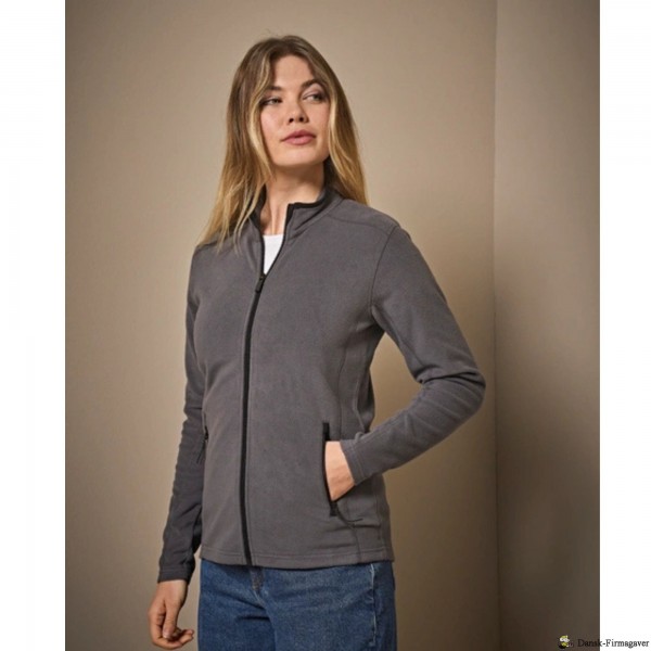 Let, faconsyet performance microfleece med laserskåret stormflap og to store forlommer.