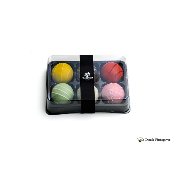 Nyd 6 forskellige trøffel-romkugler med Pina Colade, Rom & Cola, Strawberry Daiqiuri, Lemoncello, Aperol Spritz og Mojito, overtrukket med farvestrålende chokolade. Du har helt sikkert aldrig smagt romkugler som disse!