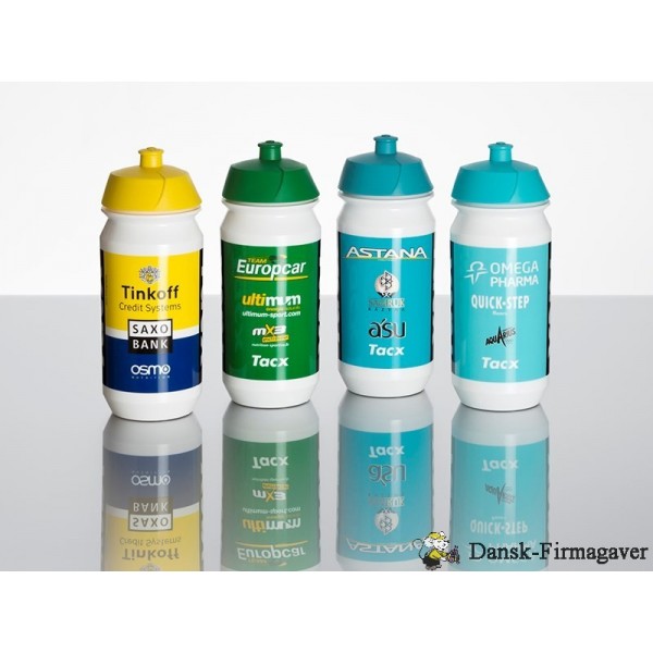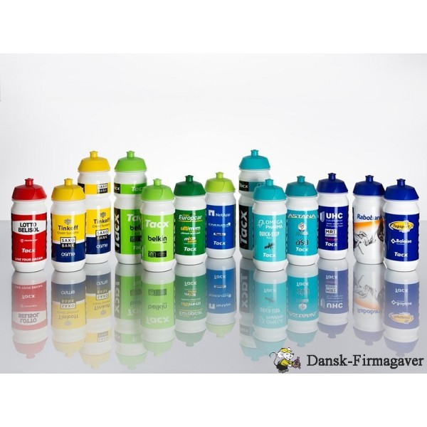 Drikkedunke med logo er en populær, synlig og meget brugt reklamegave. Vælg mellem de populære modeller fra Tacx som også bruges blandt mange professionelle cykelhold. Både drikkedunkene og tilhørende låg findes i et utal af farvevariationer som gør det let at lave et design der passer til din virksomhed.