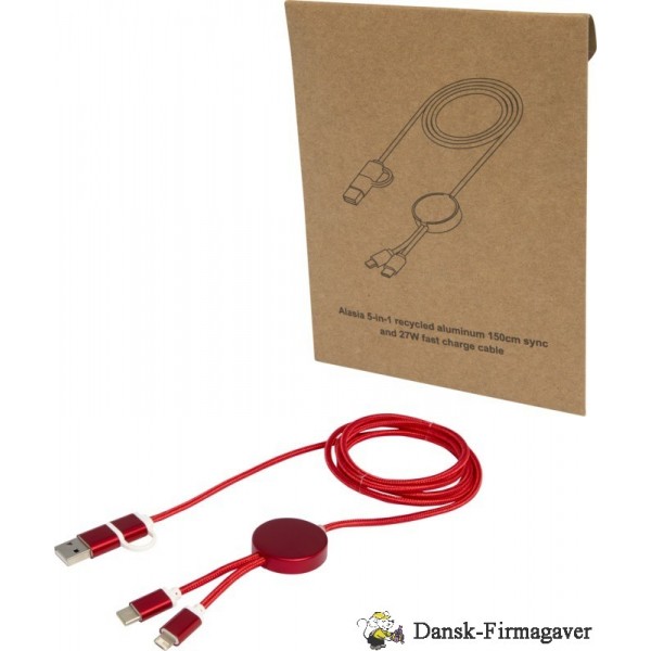 Alasia 5-i-1 kabel 150 cm datasynkronisering og 27 W hurtigopladningskabel i genvundet aluminium og plast - Rød 12442521