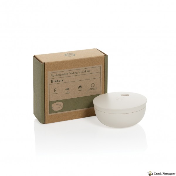 Breevia er en unik og alsidig flydende luftfugter, der forvandler ethvert glas vand til din personlige luftfugter. Den er kompakt og nem at bruge og er designet til at forbedre luftkvaliteten og skabe et sundere miljø, både derhjemme og på arbejdspladsen. Med et USB-C genopladeligt batteri kan Breevia køre i op til 6 timer på en enkelt opladning, og den genoplades på kun 2 timer Det innovative design gør den til den perfekte gave til alle, der ønsker at forbedre deres omgivelser med lethed. Fremstillet af RCS certificeret genanvendt ABS. RCS (Recycled Claim Standard) er en standard, der verificerer det genanvendte indhold i et produkt gennem hele forsyningskæden. Samlet genanvendt indhold: 51% baseret på den samlede vægt af produktet. Produktet og tilbehøret er PVC frit og emballeret i FSC® emballage.