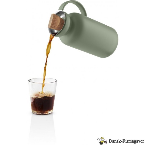Eva Solo Silhouette Termokande - Sort - 100 % drypfri termokande i indbydende, praktisk design. Kanden rummer en robust og hårdfør stålindsats og tåler maskinopvask - dog ikke låget, der skal aftørres med en opvredet klud. Termokanden holder på varmen i mange timer. Egetræsproppen vedligeholdes ved jævnlig oliebehandling.