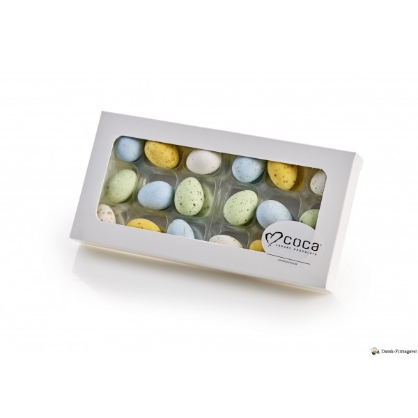 Kartonæske - Hvid m/rude - 200 gr. 18 stk. Belgiske Fugleæg