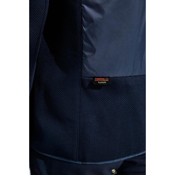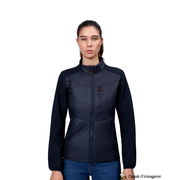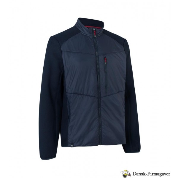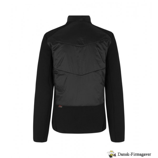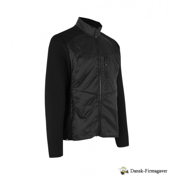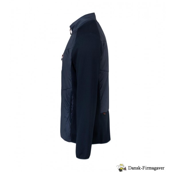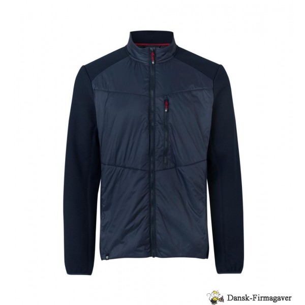 Eksklusiv komfortable hybrid jakke med let vattering. Vatteringen er THERMOLITE®T-DOWN lavet af recycled plastikflasker. Ærmer og bærestykket er lavet i en lækker blød og strækbar bikube mønstret fleece kvalitet. Flotte matte lynlåse fra YKK. Lommer og ærmer er kantet med blødt elastisk bånd. Indvendig lomme.