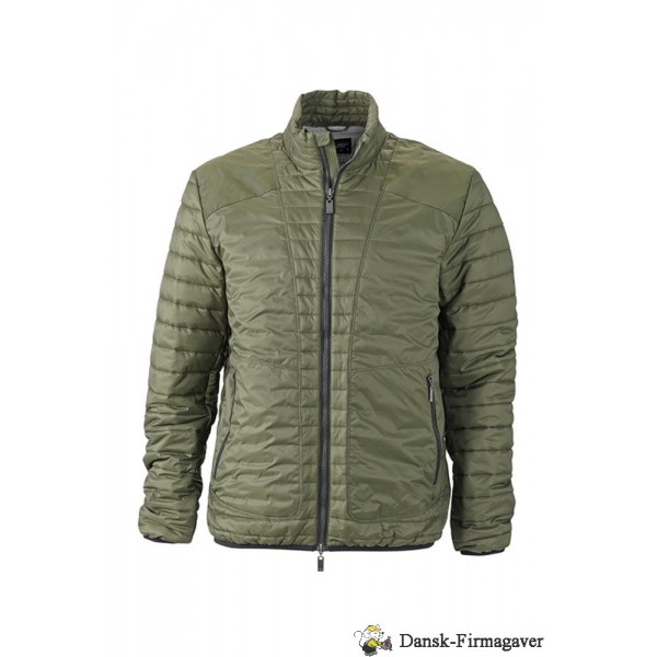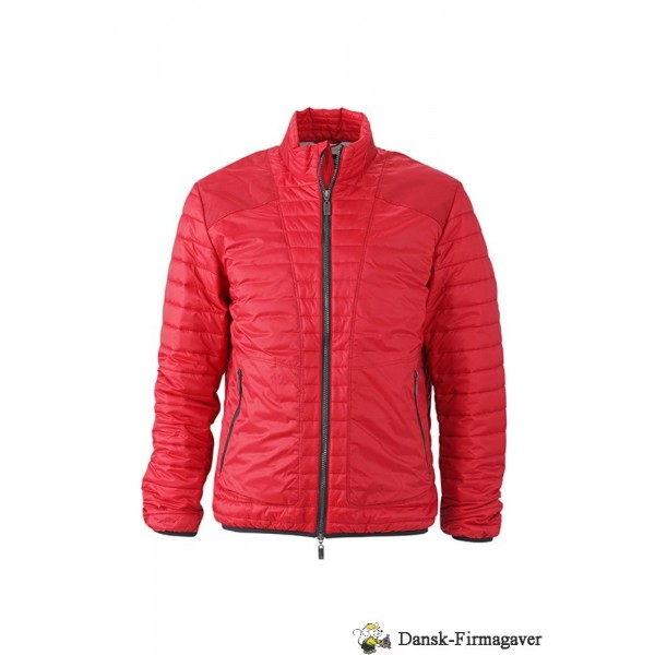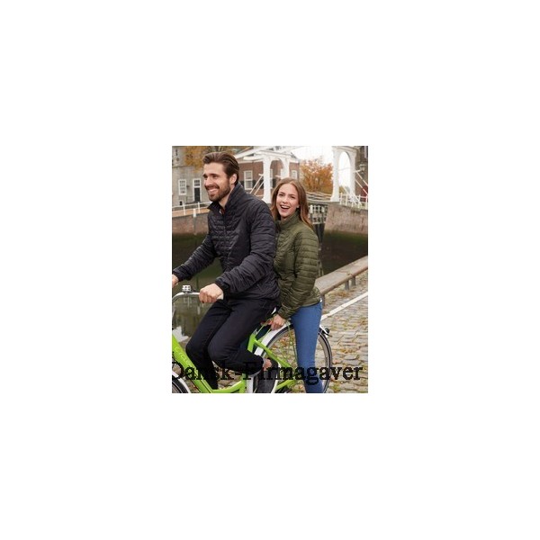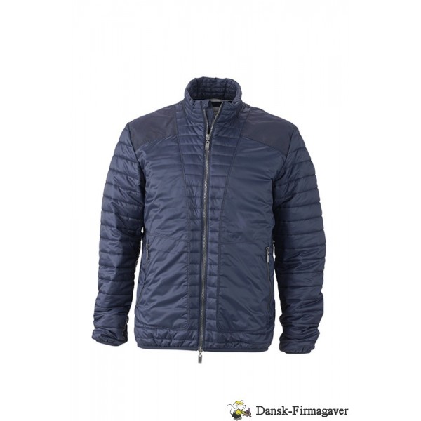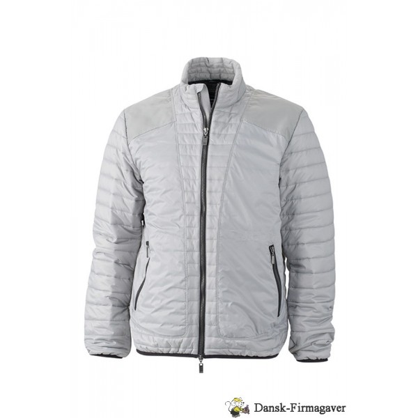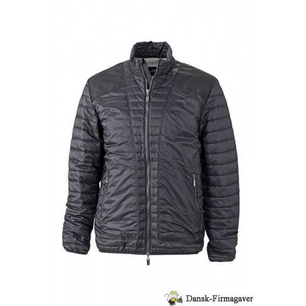 Let vatteret jakke med høj krave, gennemgående 2-vejs lynlås, 2 lynlåslommer, mesh lomme indvendig, elastik forneden og i ærmerib, 100% polyamid / for = 100% polyester / fyld = 100% polyester.