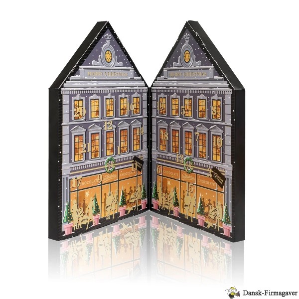 Vores julekalenderhus til lakridselskeren. 24 låger med dragerede overraskelser - naturligvis med glutenfri lakrids og Fairtrade chokolade