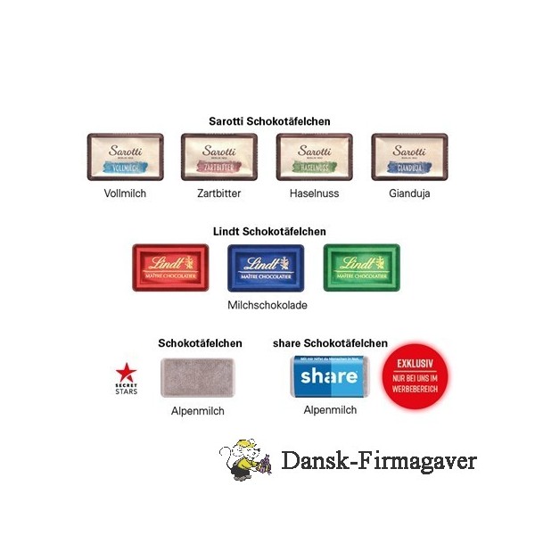 Inkluderet i basisprisen: 24 Alpine mini chokoladebarer