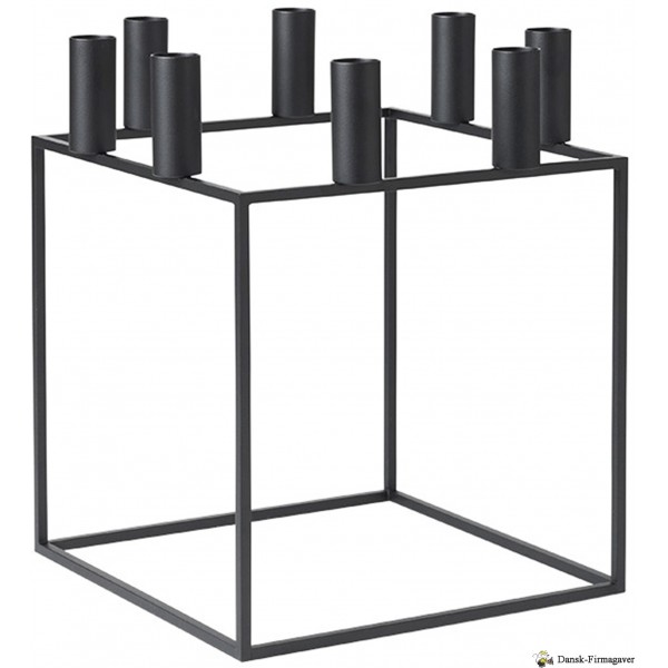 Kubus 8 lysestagen i sort er fremstillet i støbejern og tegnet af Mogens Lassen i 1962. Lysestagen fås i hvid, sort, bruneret kobber, nikkel samt messing. Med skarp fornemmelse for nutidens funkisstil designede Mogens Lassen i 1962 de ikoniske Kubus lysestager, dengang forbeholdt familien og de nærmeste arkitektvenner. Kubus fremstilles fortsat i Danmark, og har blandt arkitekter og designelskere opnået status som et moderne internationalt designikon. Rengøring: Vend stagen med lyseholderne ned ad, og placer den på en bageplade med bagepapir stående på lyseholderne. Sættes i en 75 grader varm ovn i 15-20 minutter. Stagen tørres herefter af med en fugtig klud.