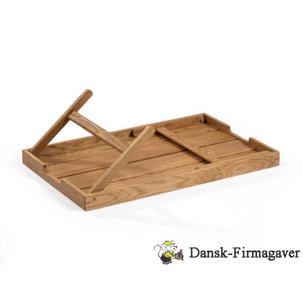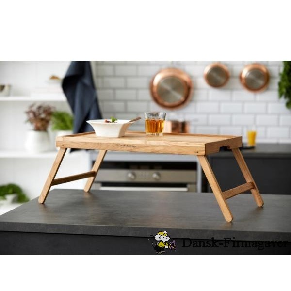 Serverings-/sengebakke med sammenklappelige ben. Server dejlig morgenmad på sengen eller nyd en afslappet stund i sofaen. Bakken aftørres med en fugtig klud og kan løbende vedligeholdes med madolie. Varen er produceret i FSC®-certificeret egetræ (FSC-C166612).