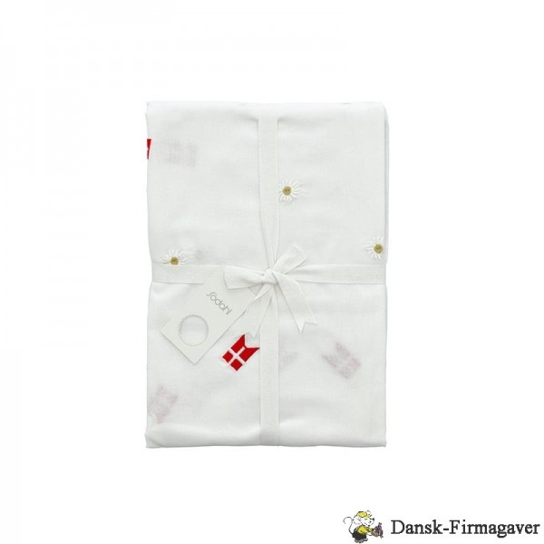 Pynt fødselsdagsbordet og tilføj prikken over i'et - Södahls Tillykke-stofdug. Dugen er pyntet med det fineste fødselsdagsbroderi og er fremstillet i 100 % økologisk bomuld. Dugen måler 140 x 220 cm.