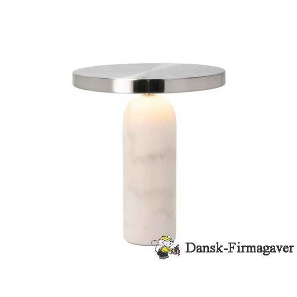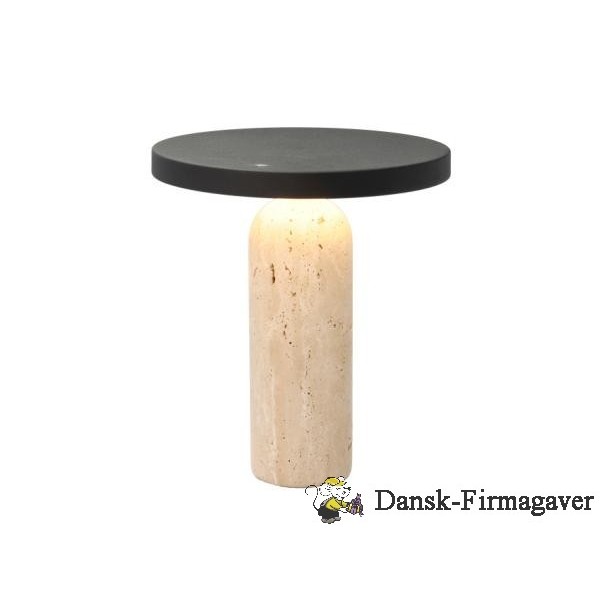 Bordlampe med en dybsort lampeskærm i metal og en solid base i naturfarvet travertin. Med tre forskellige lysindstillinger kan belysningen nemt tilpasses forskellige behov ved et enkelt tryk på lampens touch-knap. Bordlampen passer perfekt ind i det nordiske hjem med sine minimalistiske, rene linjer. Den er perfekt som en del af indretningen i stuen, på natbordet eller som et elegant touch på hjemmekontoret.