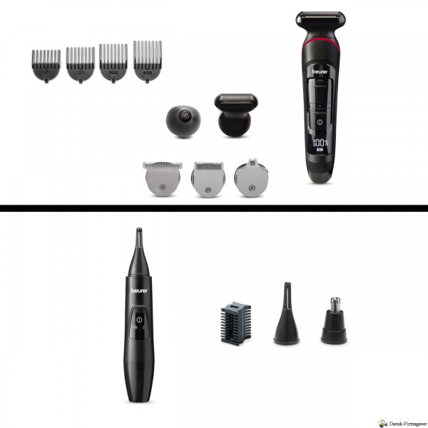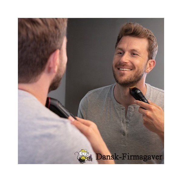 Sæt bestående af genopladelig multigroomer til trimning af alle kropshår og præcisionstrimmer til øre, næse og tilretning af bryn.