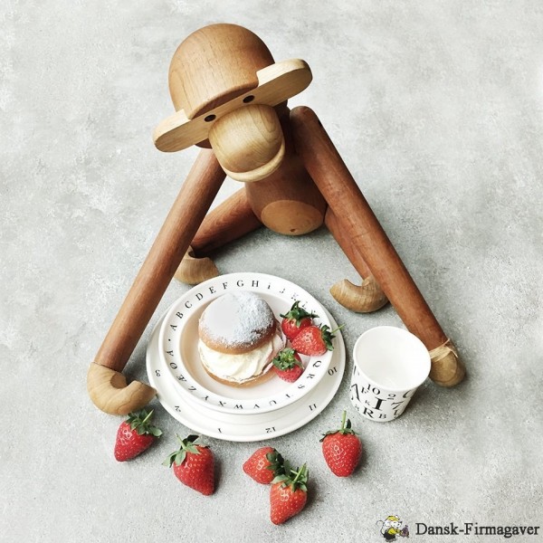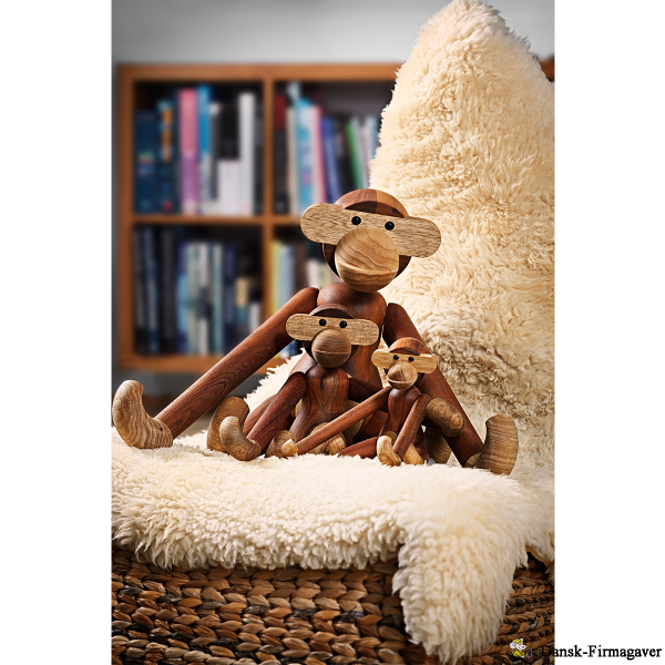 Hils på mellemste barn i abeflokken fra Kay Bojesen. Indtil til nu har abefamilien bestået af den velkendte og elskede abe på 20 cm og en voluminøs storebror på hele 46 cm. Men nu har mellemste abebror på 28 cm set dagens lys. Lige som sin lille- og storebror er mellemste brormand forarbejdet i hånden på et dansk trædrejeri. Den elskede abe følger os fra barn til voksen i alle livets faser og er en populær gaveide til dem, vi holder meget af. Mon ikke han finder vej til ønskesedler og gaveborde til alskens særlige anledninger.