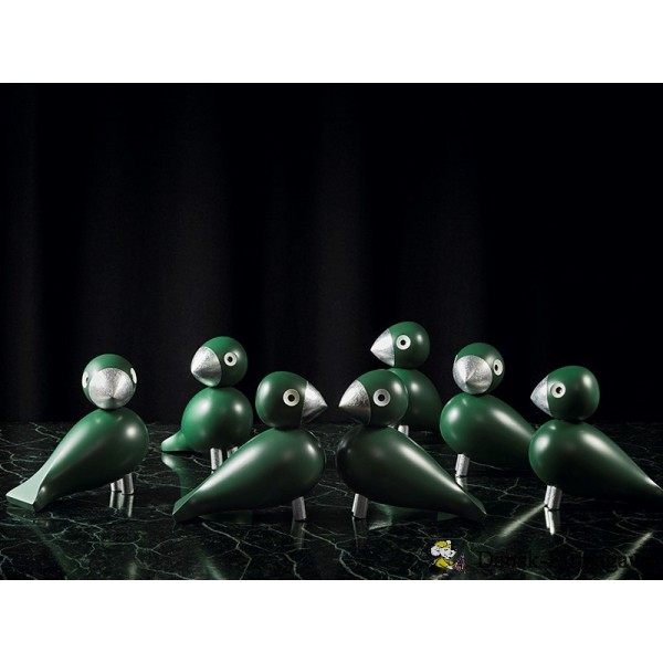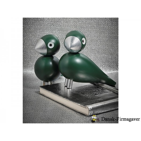 Skøn sangfugl i mørkegrøn med næb og ben beklædt i bladsølv. Sangfuglen er fra Kay Bojesen og er blevet døbt ”Sangfuglen Georg” som en hyldest til Kay Bojesen`s læretid som sølvsmed hos Georg Jensen, hvor han blev udlært i 1910. Den skønne grønne nuance og de fine detaljer i sølv er inspireret af gamle sølvsmykker fra denne tid og passer perfekt sammen med de andre sangfugle fra Kay Bojesen.