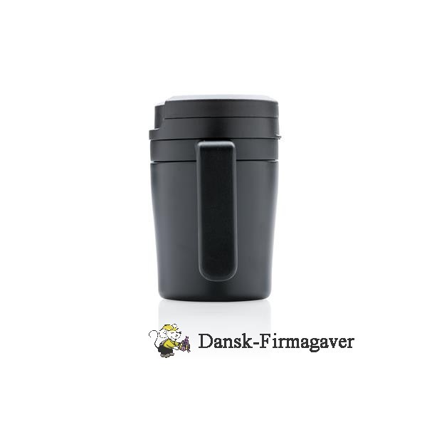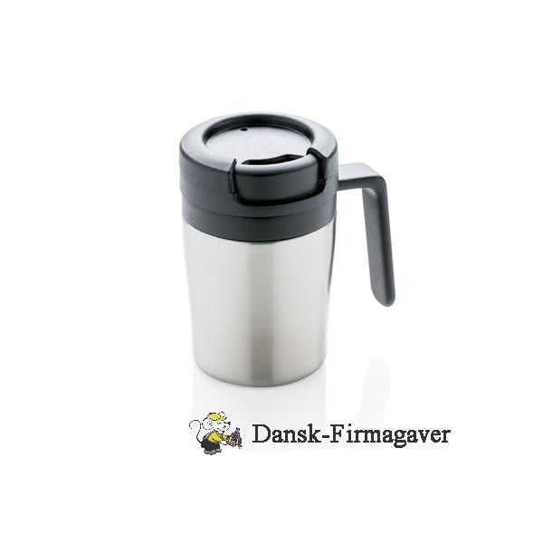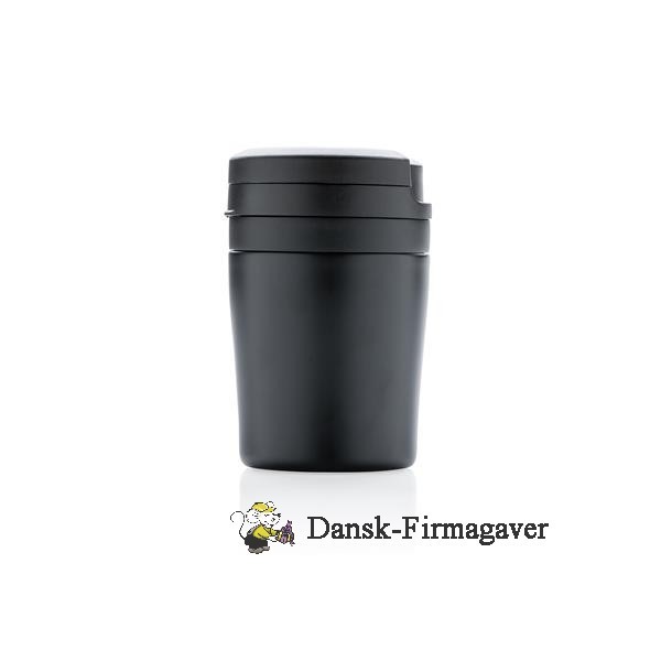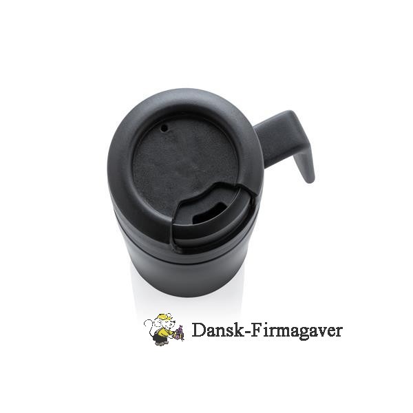 Mindre er godt. Med en 8 cm højde er dette dobbelvægget krus ideel til kaffemaskinen. PP indvending. Nem drej lukning af låg for spildsikring. Godt til Espresso etc. Tåler kun håndopvask. Indhold 160ml. Registreret design®