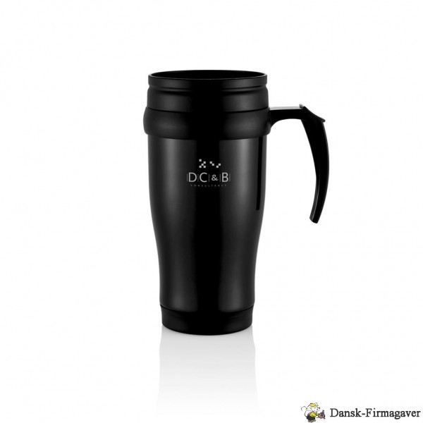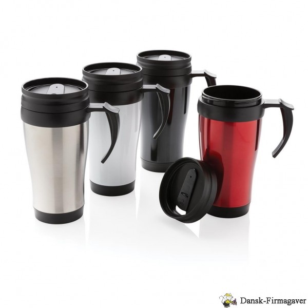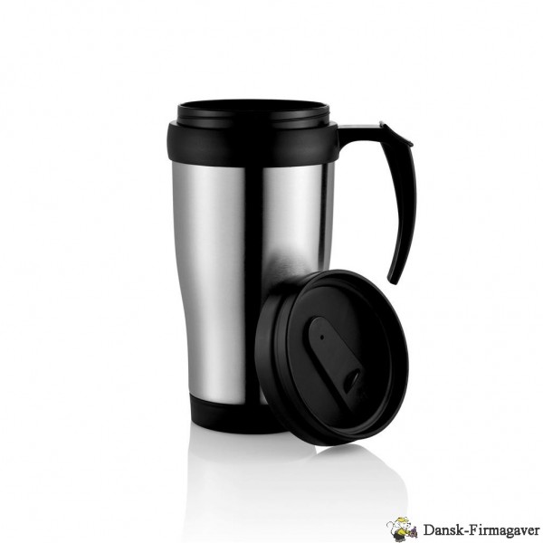350ml krus i rustfrit stål på ydersiden og PP på indersiden med låg og bund i sort.