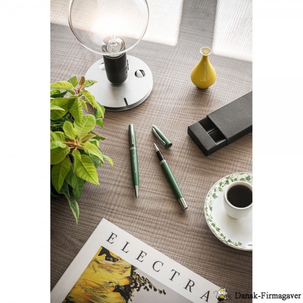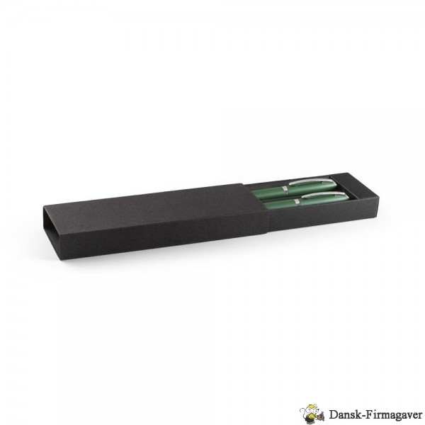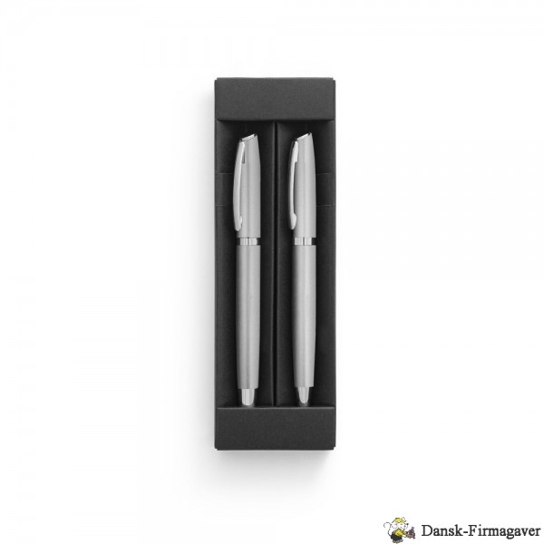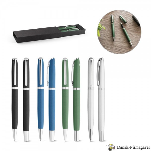 Pennesæt bestånde af kuglepen og rollerballpen i aluminium (100% genbrugt) krop , klips og spids. penne er samme farve, kuglepenne har drejemekaniske .