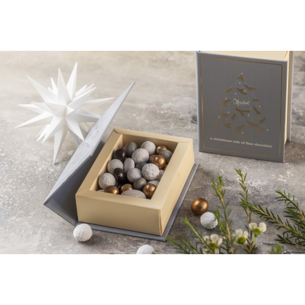 Sød bog fyldt med lækkerier, blandt andet hasselnødder med mørk chokolade,
