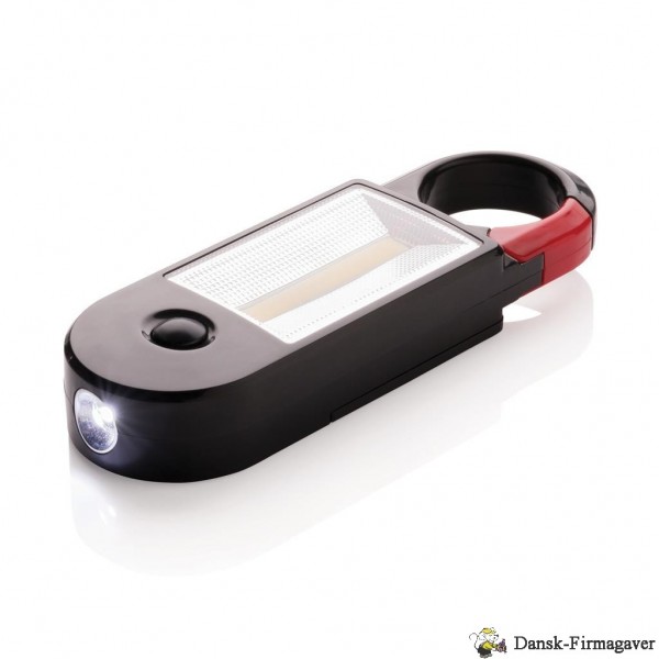Smart arbejde lys med både LED-lys på fronten og ultra-lyse COB lys. Lyset har en magnet og krog til at hænge det hvor du ønsker det. Inklusive batterier.