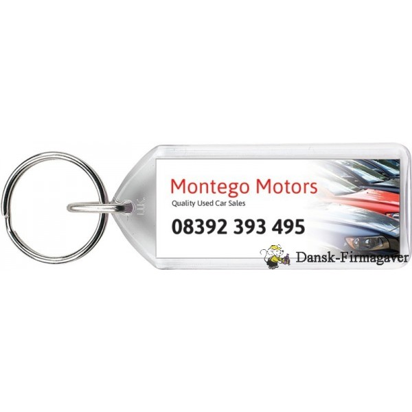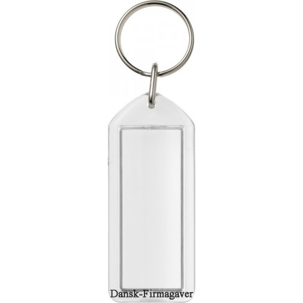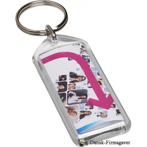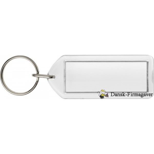 Klar rektangulær F1 nøglering med metal split nøglering. Denne nøglering er genåbenlig med en mønt. Den snoede metalring har en flad profil, som er ideel til forsendelser. Udskriv indlagte dimensioner: 5,0 cm x 2,0 cm. GPPS plast, Papir. FSC Mix Credit P8 CU-COC-877277.