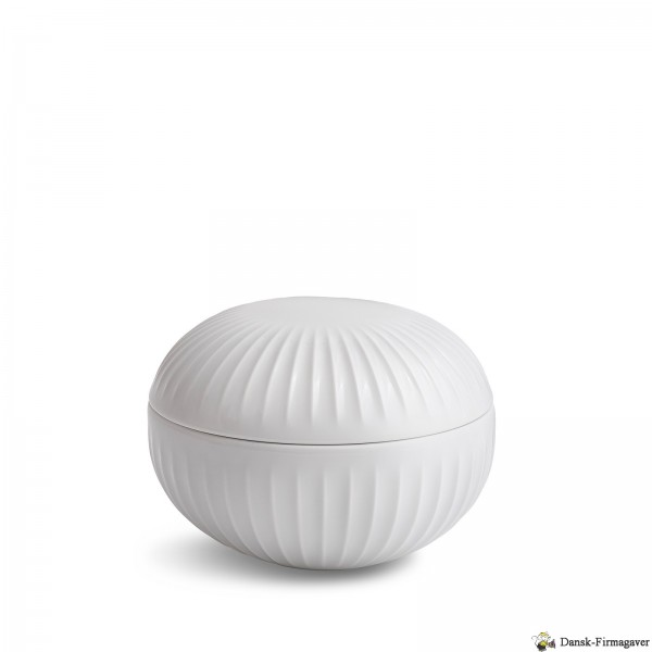 Denne Kähler-bonbonniere er en del af den klassiske Hammershøi-serie, designet i samarbejde med den danske designer Hans-Christian Bauer. Serien er kendetegnet ved sine fine, elegante riller, som giver keramikken et helt unikt udtryk. Brug den smukke bonbonniere som dekorativ skål på bordet eller som lågkrukke på badeværelset, i entréen eller i soveværelset.
