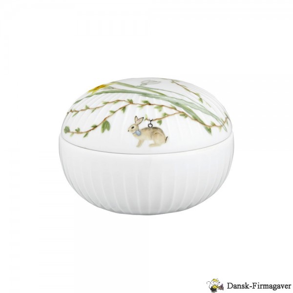 Påske går ofte hånd i hånd med de første forårsfornemmelser – og den stemning er på smukkeste vis indfanget i Hammershøi Easter. Den eventyrligt smukke påskekollektion er dekoreret med nyudsprungne grene og traditionsrige påskesymboler, der er håndmalet af Rikke Jacobsen og overført til porcelænet. Sæt den fine bonbonniere på bordet sammen med Hammershøis klassiske hvide stel og skab med enkle virkemidler et spændende møde mellem det moderne og det traditionsbundne. Tåler maskinopvask. Hammershøi Easter-kollektionen indeholder også et krus, en tallerken og påskeophæng.