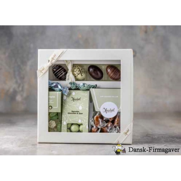 Fin gaveæske med 4 maxi marcipanæg, smørbløde flødekarameller,
