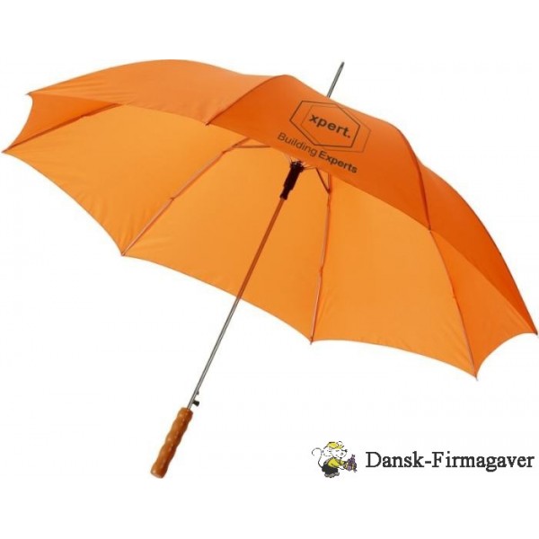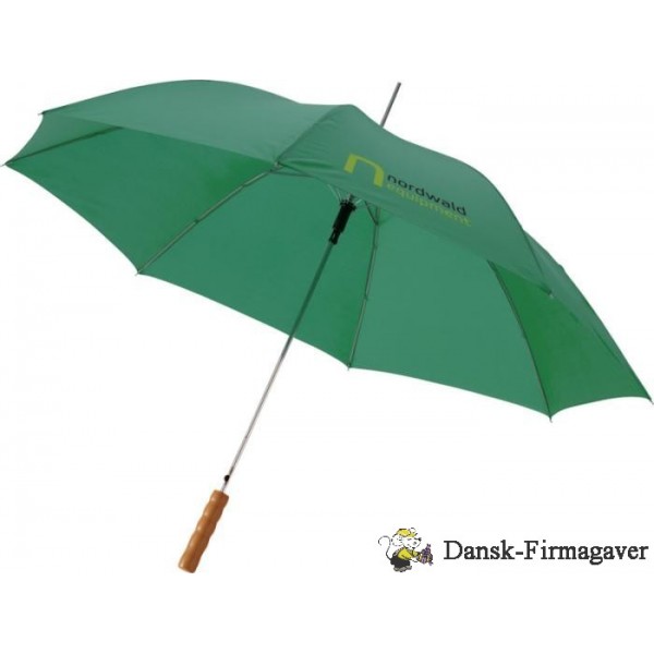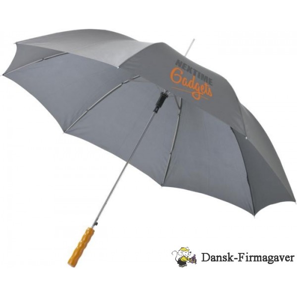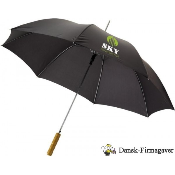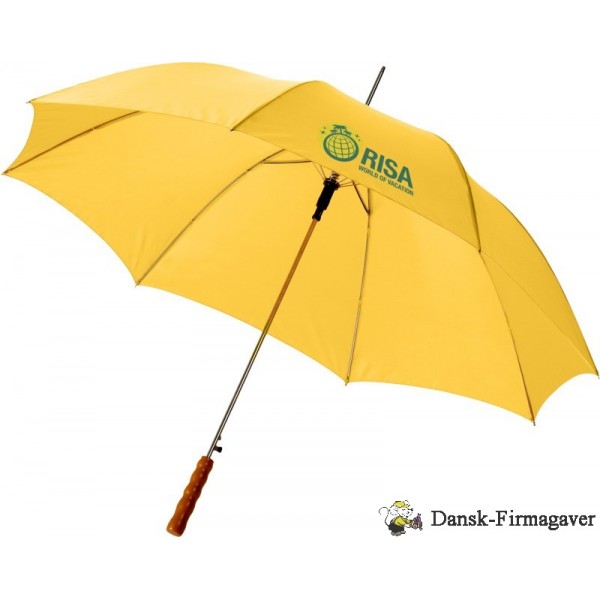 Lisa 23" paraplyen er en rigtig bestseller. Takket være det automatiske system kan paraplyen åbnes hurtigt. Den har et skaft og ribber af metal og et træhåndtag, der giver paraplyen et klassisk look. Paraplyen giver masser af muligheder for at tilføje et reklamebudskab eller et logo. Desuden kan Lisa paraplyen fås i en række forskellige farver. Polyester.