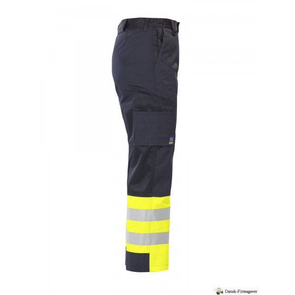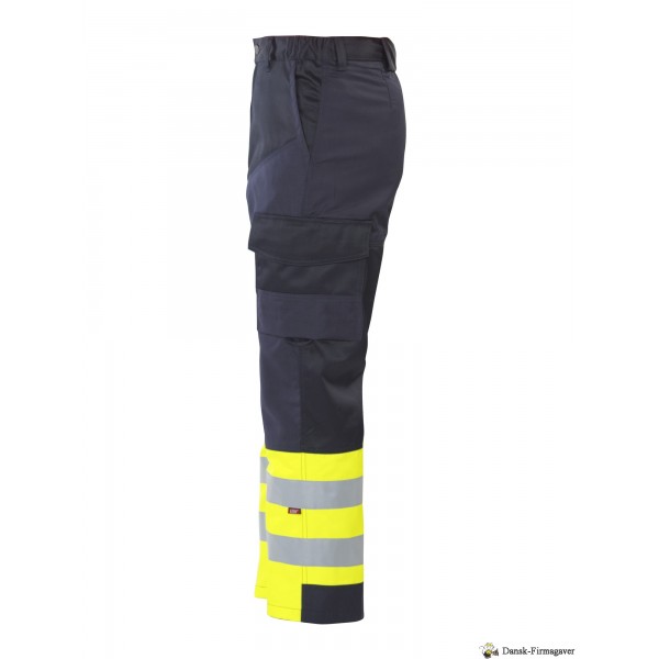 Bukser med stretch for bedre komfort. Ingen baglommer og bred bæltetunnel for at undgå punkttryk ved ryggen. En buks som er velegnet til lange arbejdsdage i en siddende arbejdsstilling. Materialet er smuds- og olieafvisende. Cordura® forstærket på lår, ved lårlommerne, på lommekanten samt på bagsiden af afslutningen forneden. Dybe lommer og elastik i livet. To lårlommer, den ene med flap og indvendig telefonlomme, den anden har plads til dokumenter og kuglepen. Lommerne er tilpasset til Inbags.