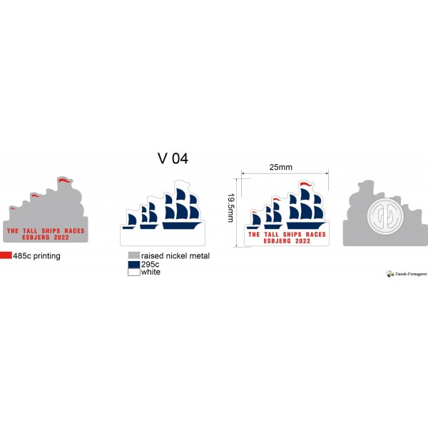Eks. ved 1.000 stk Pins med et logo stk pris kr. 4,95