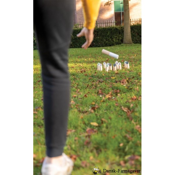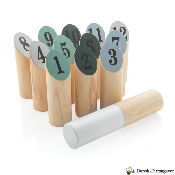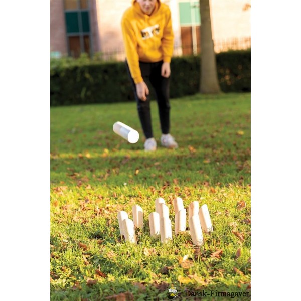 Dette vanedannende taktiske spil udfordrer spillerne til at kaste træpinden efter de andre 12 træpinde. Den første spiller til at nå præcis 50 point vinder. Det er nu tilladt at overstige 50. Det ser måske let ud, men det er meget udfordrende! Efter hvert kast er træpindene placeret oprejst igen. Sættet indeholder: 12x nummererede træpinde og 1 kaste træpind alle lavet af stærkt Pine træ. Medfølger bomulds pose og regelbog.