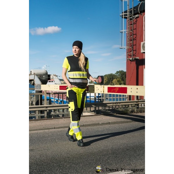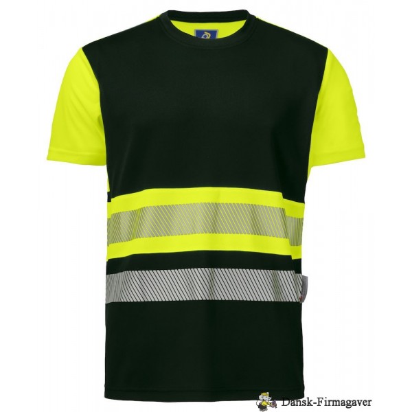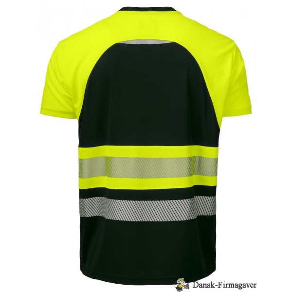 T-shirt med høj synlighed, der er svedtransporterende og hurtig tørrende. Skårede reflekser for optimal fleksibilitet og åndbarhed. Rund hals med forstærket nakkesøm.