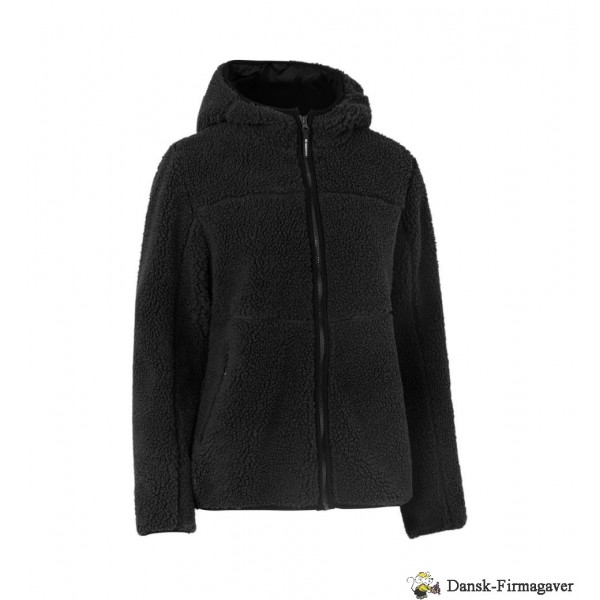 Blød teddy feece jakke med hætte og indvendige lynlås