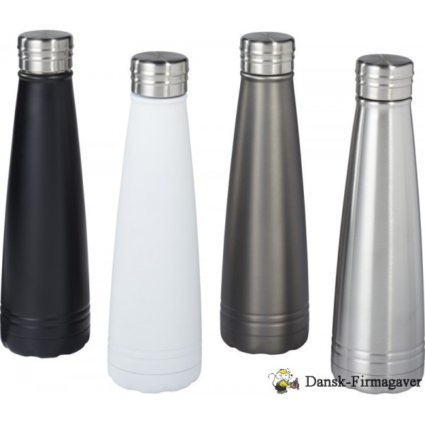 Duke flaske har dobbelt væg 18/8 grade rustfrit stål med vakuum isolering. Inder væg er belagt med kobber for bedre at holde drikkevarerne varme i 12 timer eller kolde i 48 timer. Kapacitet 500 ml. Leveres i Avenue æske. Rustfrit stål.