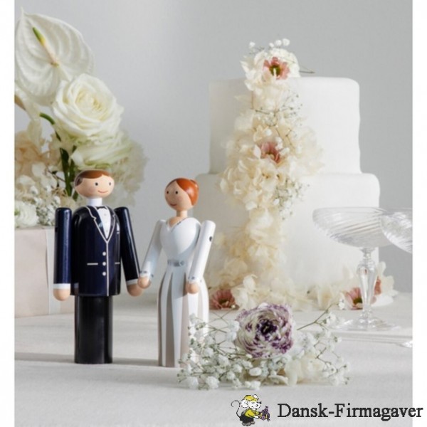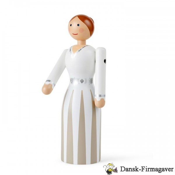 Den smukke brud fra Kay Bojesen har en gulvlang, hvid kjole på med fine malede detaljer som et sølvbånd om livet, ved halsen og ved håndleddene og tynde striber på kjolen, der er med til at give figuren liv og sjæl. Bruden er fremstillet i FSC-certificeret bøgetræ med den høje håndværksmæssige kvalitet, som er kendetegnet for træfigurerne fra Kay Bojesen.