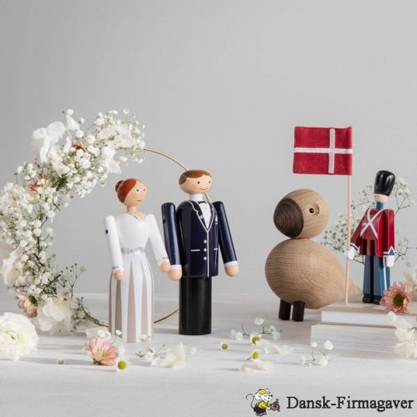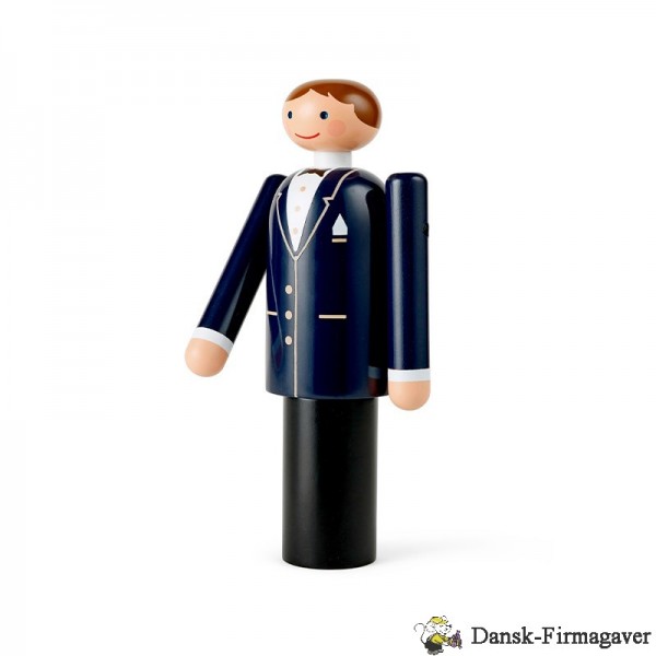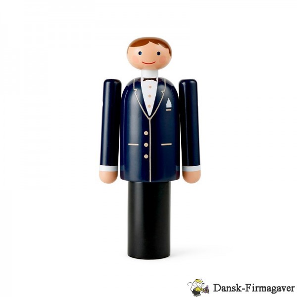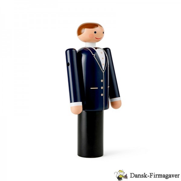 Med Gommen fra Kay Bojesen får du originalt og klassisk dansk træhåndværk – designet i Bojesens ikoniske runde former med hans velkendte glimt i øjet. Gommen er elegant og klassisk klædt i mørkt jakkesæt med hvid skjorte og sort butterfly. Med dens fine detaljer som knapper, lommeklud og revers bliver jakken bragt til live, og Gommens glade og imødekommende smil giver ham charme og personlighed.